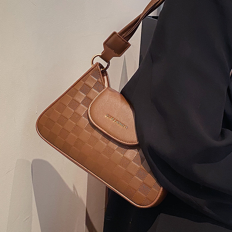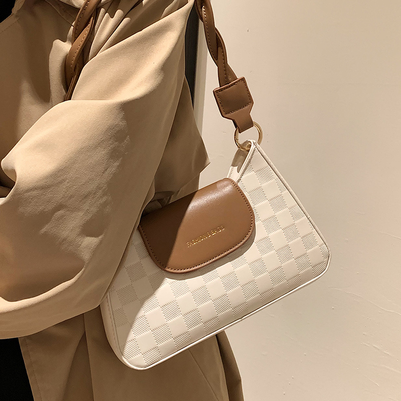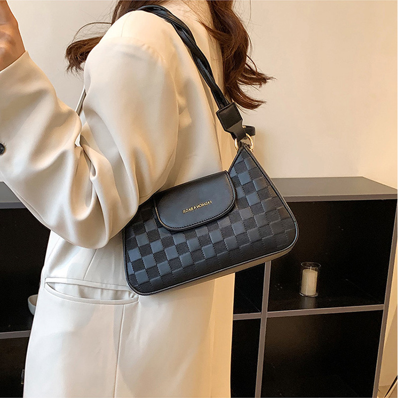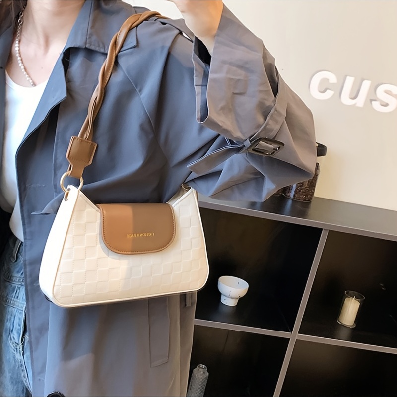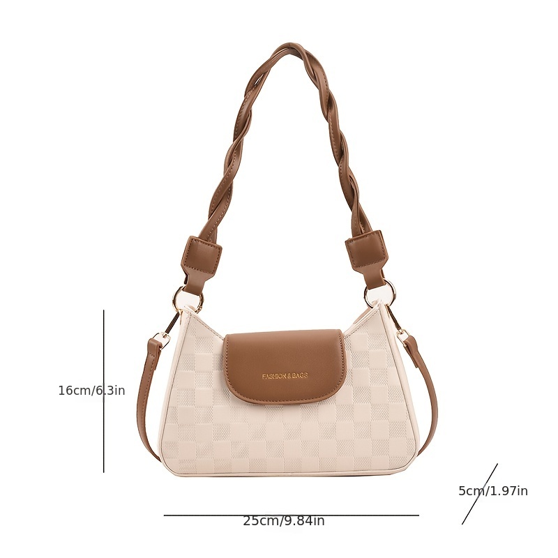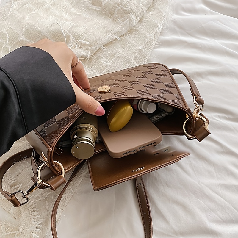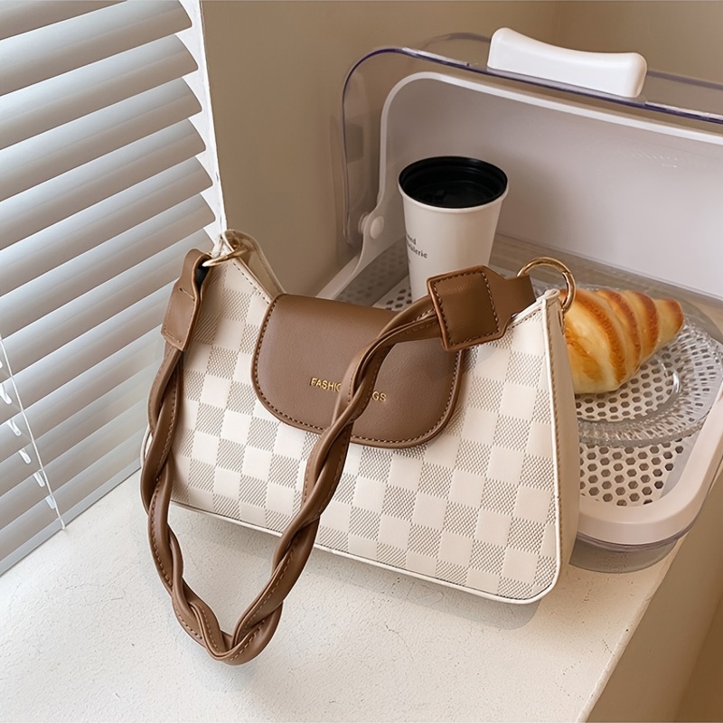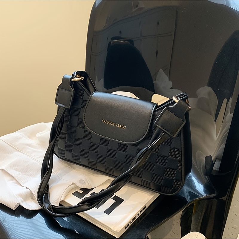 • Checkered Embossed Baguette Bag, Trendy Flap Zipper Crossbody Bag, Versatile Shoulder Purse