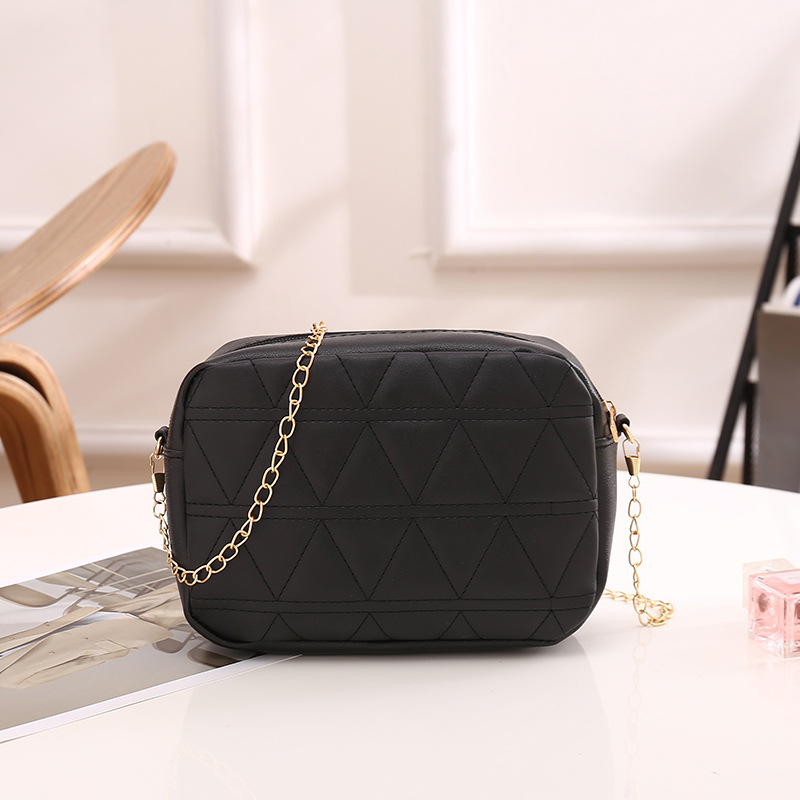 • Geometric Embroidery Square Bag, Women's Chain Crossbody Bag, Small Zipper Shoulder Purse