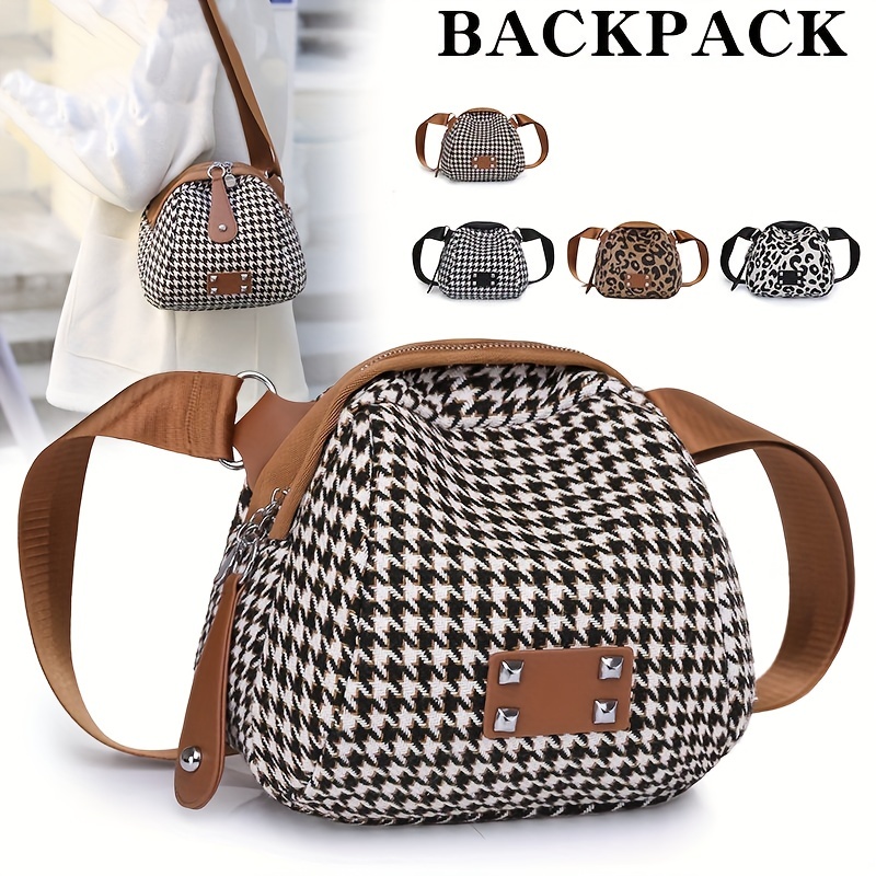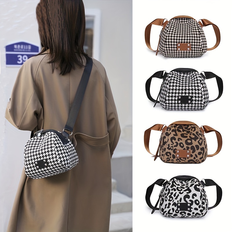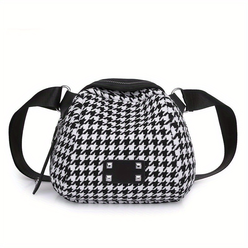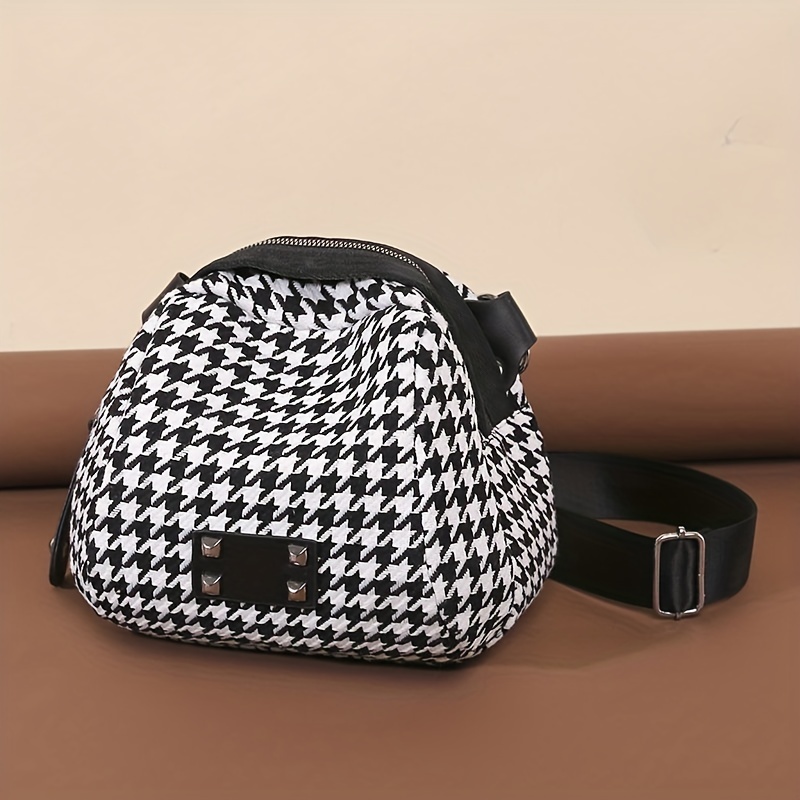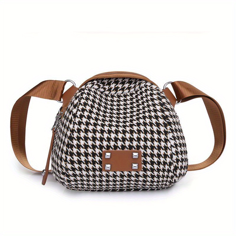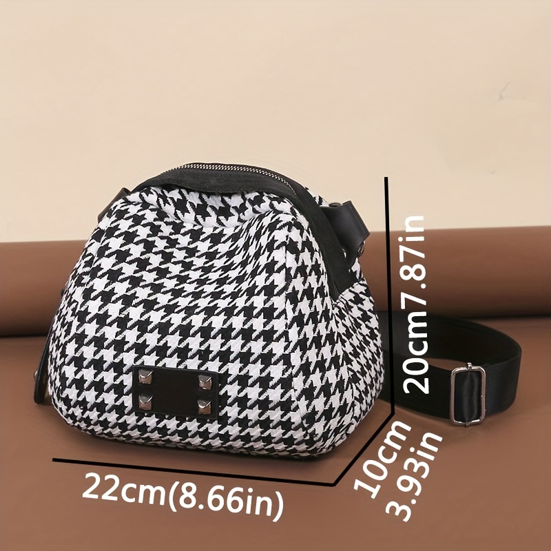 • Houndstooth Pattern Crossbody Bag, Fashion Tweed Shell Purse, Versatile Shoulder Bag For Women