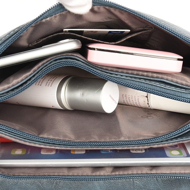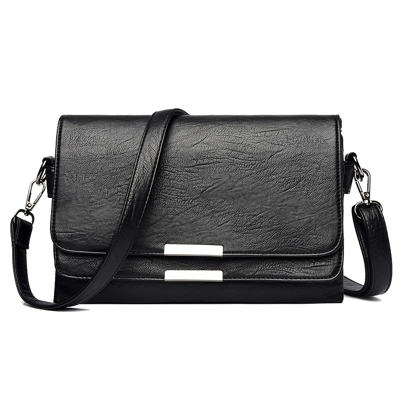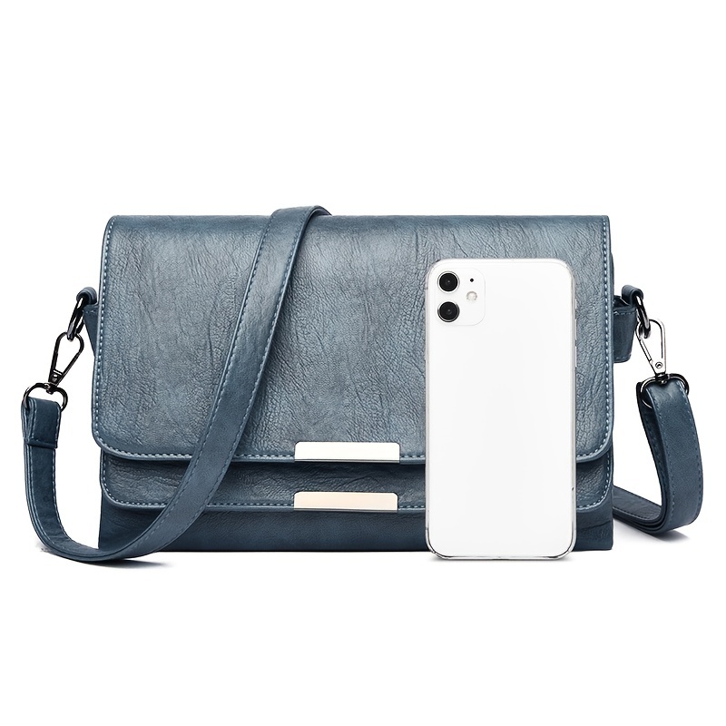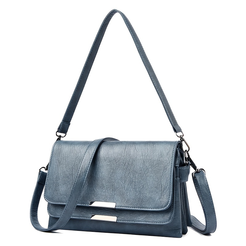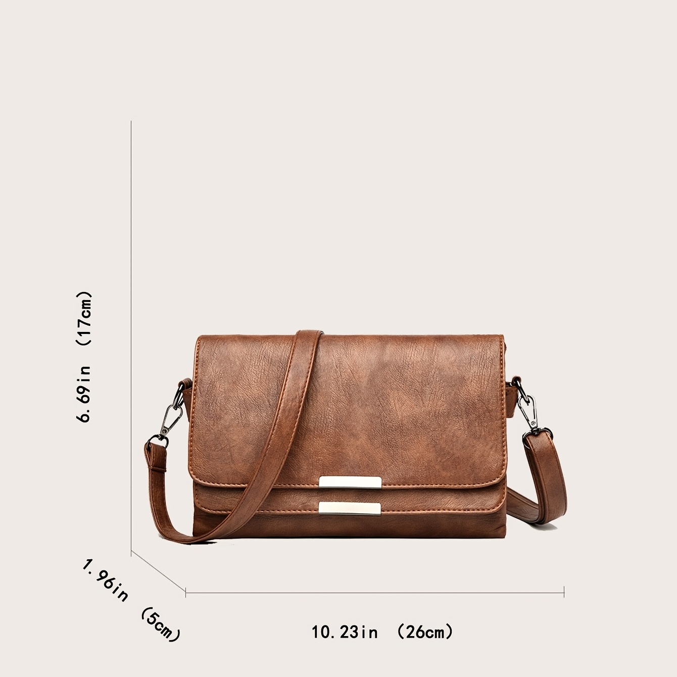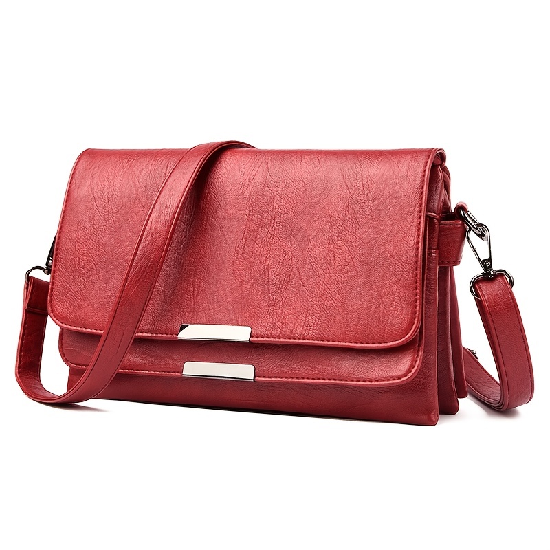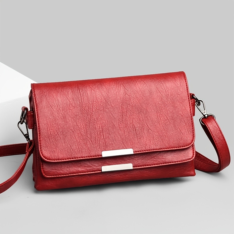 • Metal Decor Crossbody Bag, Trendy Double Flap Square Purse, Women's Three-Layer PU Leather Shoulder Bag