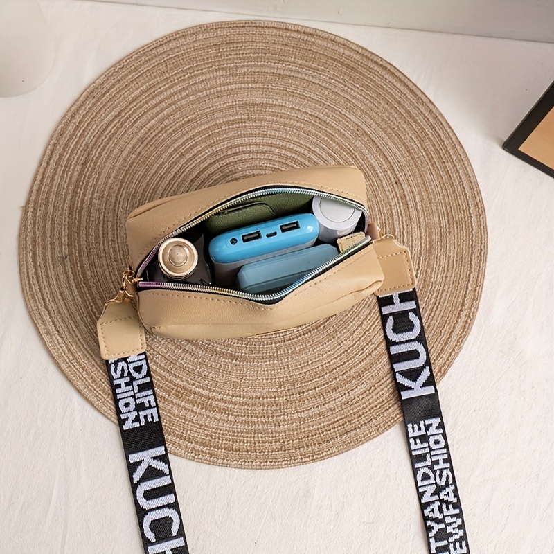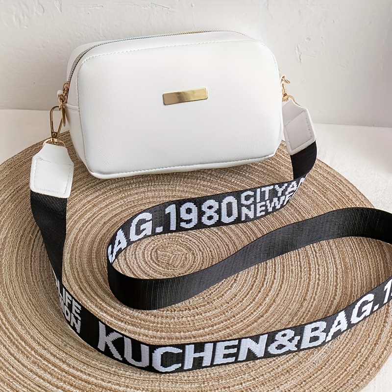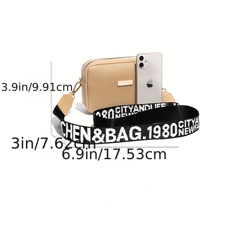 • Metal Decor Crossbody Bag, Women's Faux Leather Square Purse, Letter Strap Shoulder Bag