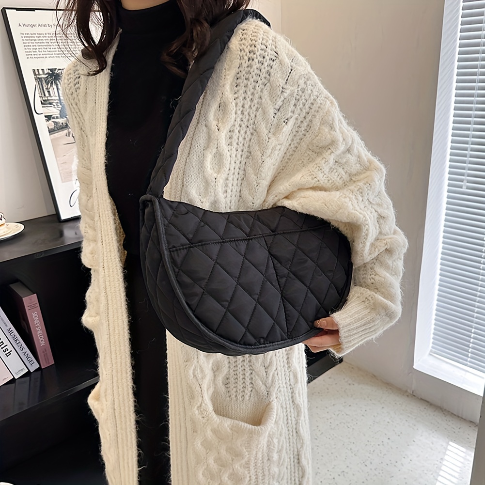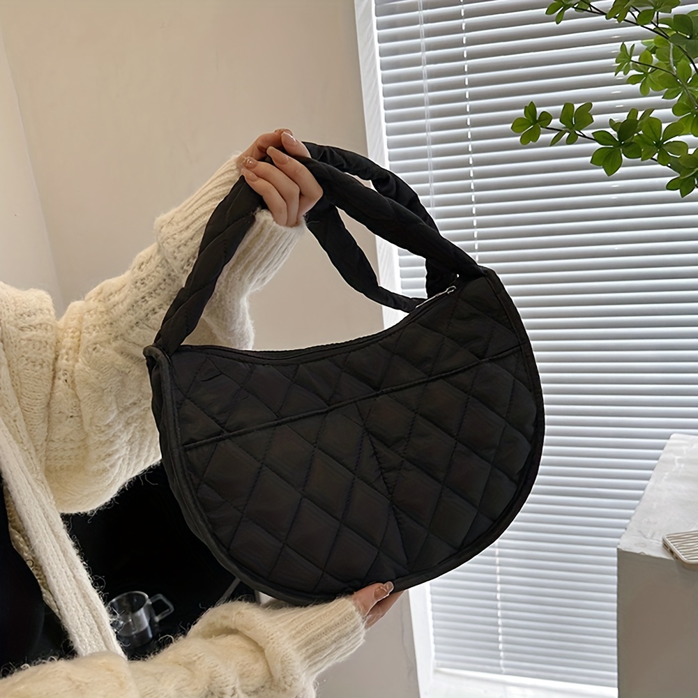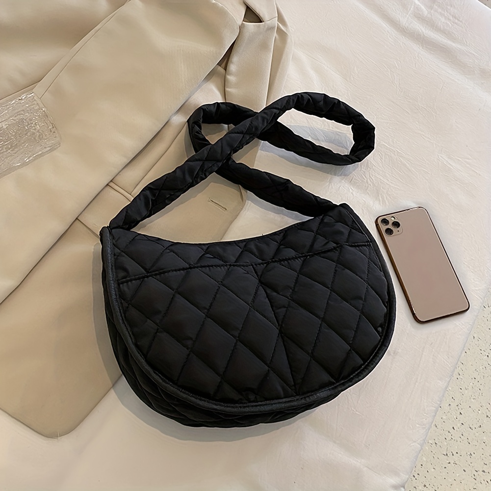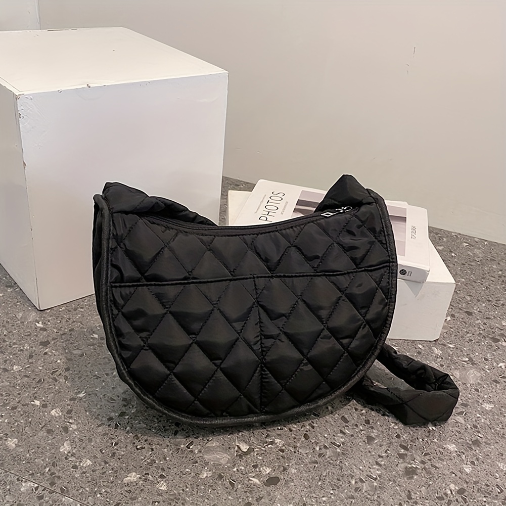 Puffer Quilted Crossbody Bag, Lightweight Padded Hobo Bag, Casual Nylon Shoulder Bag