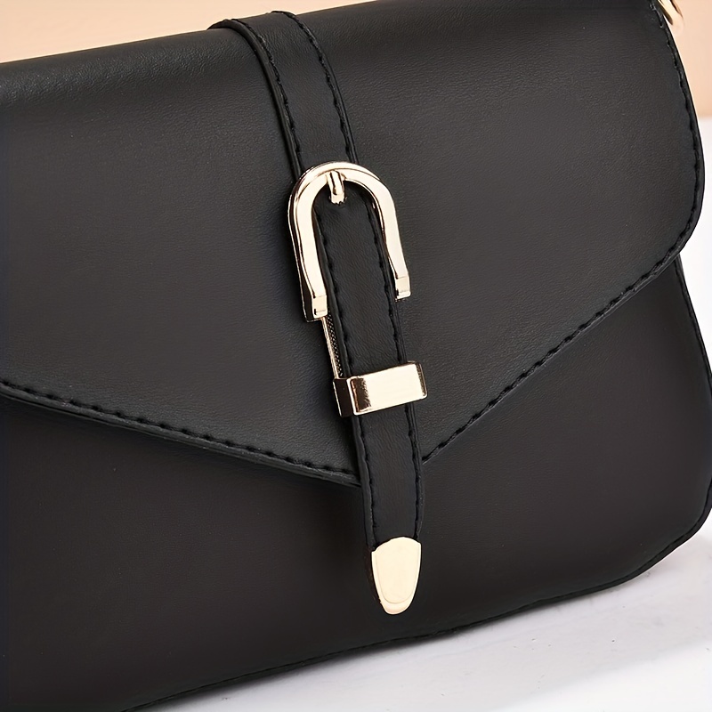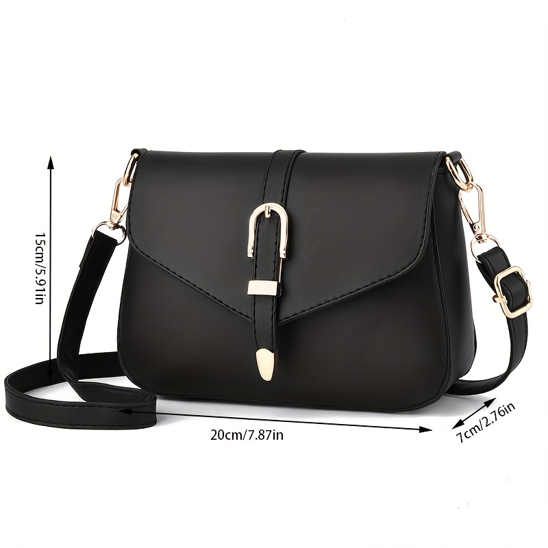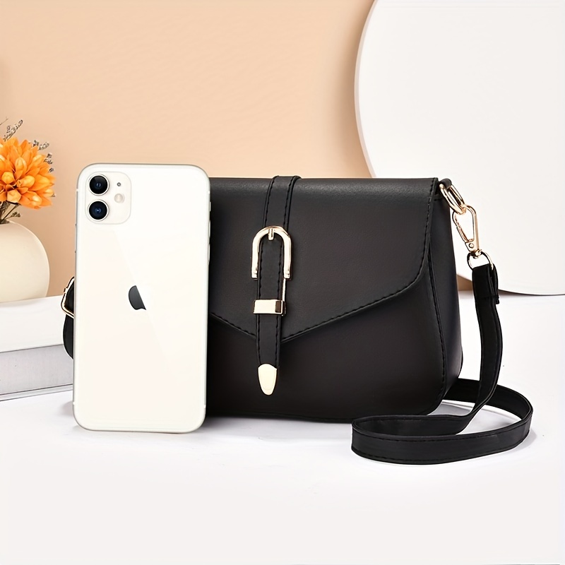 • Simple Crossbody Bag For Women, Buckle Decor Shoulder Bag, Small Faux Leather Square Purses